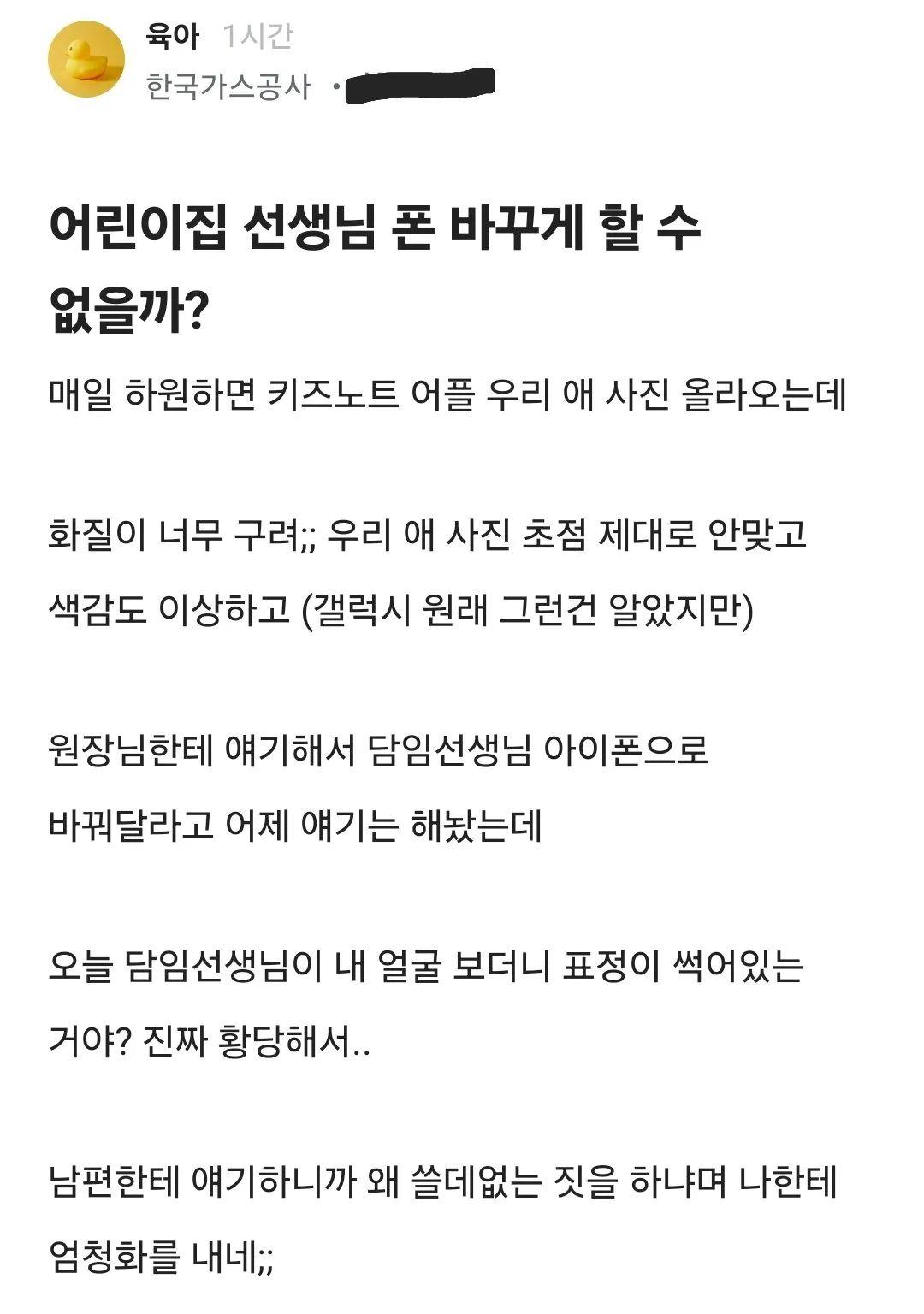 어린이집 선생님 폰바꾸게 할 수 없을까? ㄷㄷㄷㄷㄷ