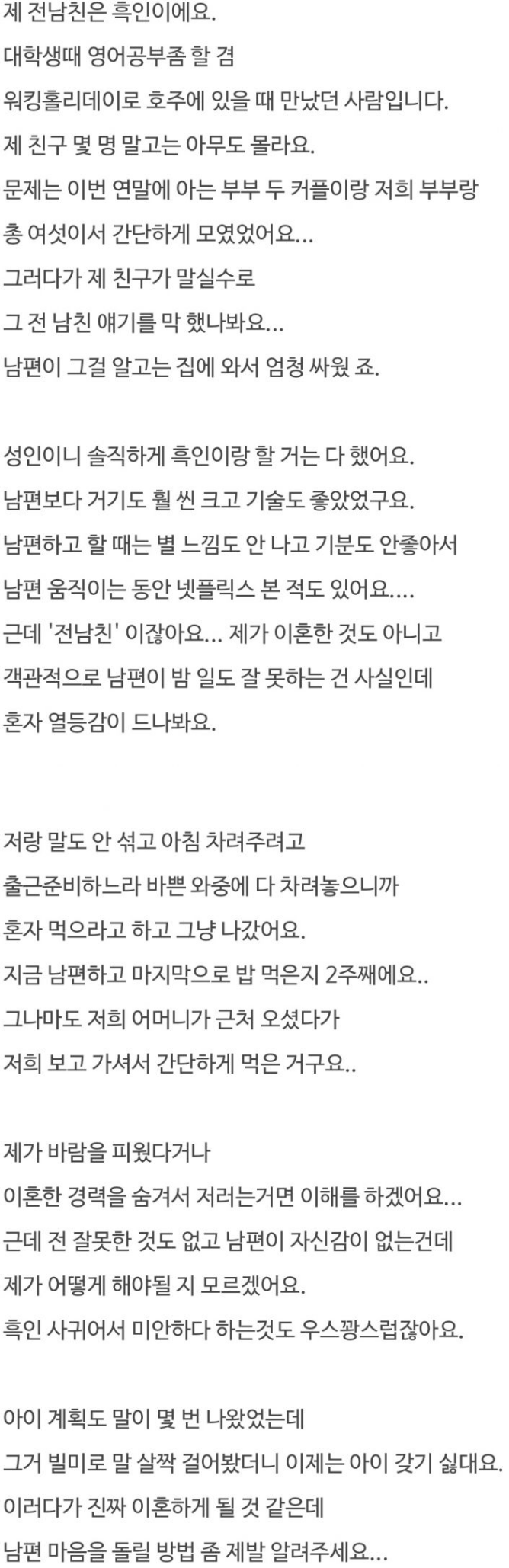 전남친이 흑인이라는걸 남편에게 들켰는데 ㄷㄷㄷ