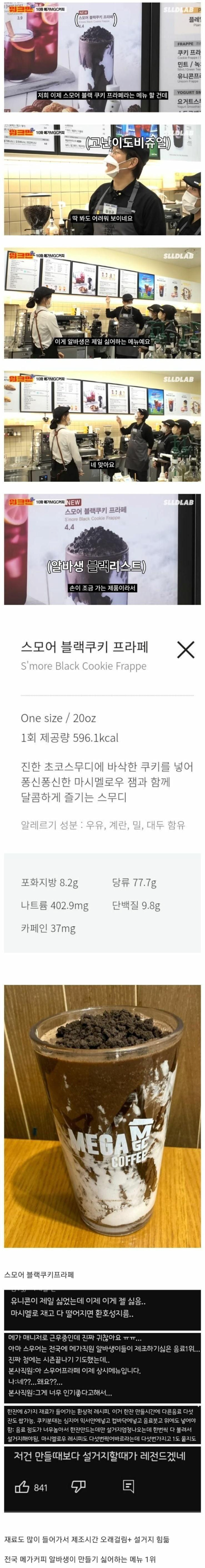 메가커피 알바생들이 제일 싫어하는 음료