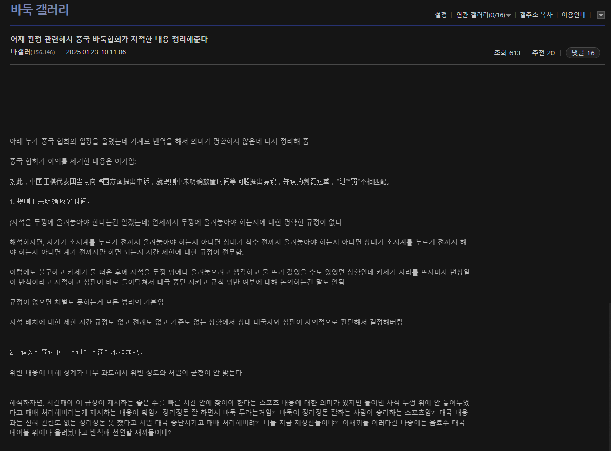중국 바둑 협회가 어제 지적한 내용이랑 바둑갤 반응