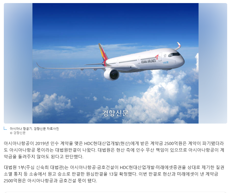 몽큐새키 아시아나 쳐먹어볼까 하다가 감당 안되니 계약금 달라고 소송 걸었다가