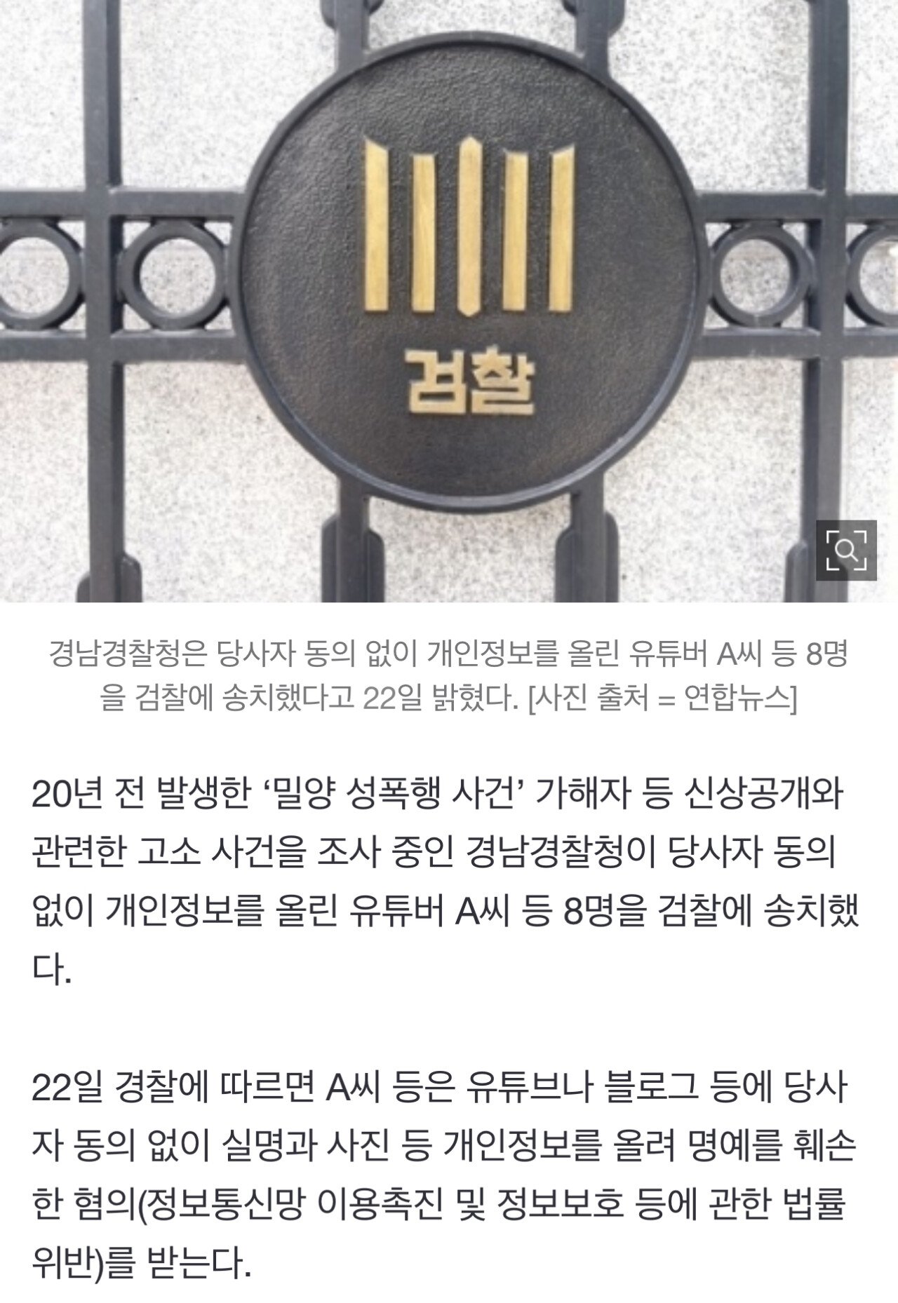 밀양 성폭행 사건 폭로 유튜버 8명 검찰 송치 ㄷㄷㄷㄷ