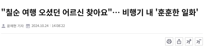 "칠순 여행 오셨던 어르신 찾아요"… 비행기 내 '훈훈한 일화'
