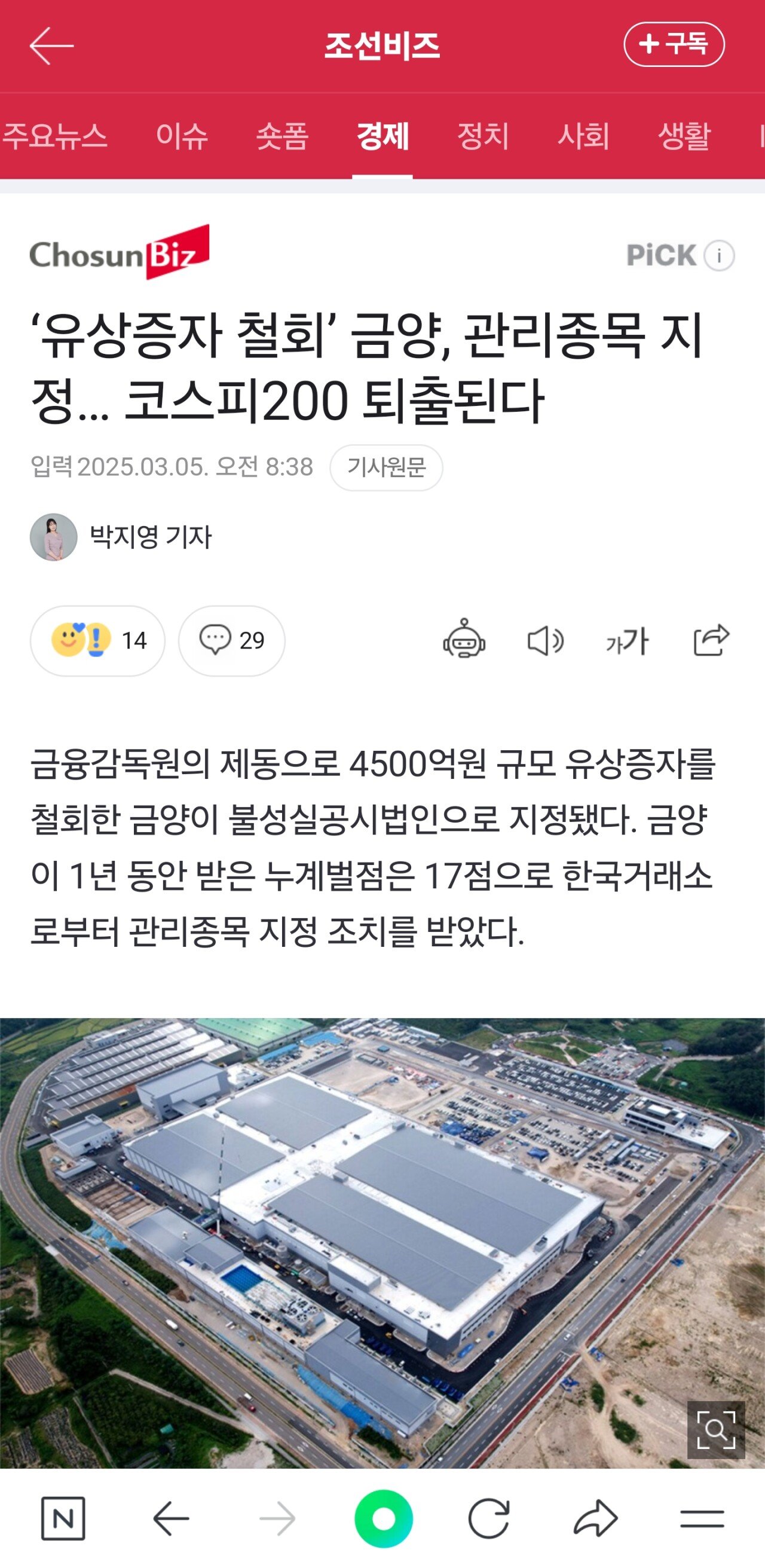 5일 금융감독원 전자공시시스템에 따르면 한국거래 소는 전날(4일) 금양을 불성실공시법인으로 지정한 다고 공시했다. 금양은 지난해 4500억원 규모의 주 주배정 유상증자를 추진하겠다고 밝혔다가 소액주주 들의 반발이 거세지자 계획을 철회하겠다고 공시했 는데 이게 불성실공시 유형 중 하나인 공시번복에 해 당됐다.