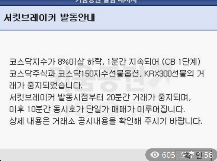 코스닥 서킷브레이커 발동 (사진첨부) ㄷㄷㄷㄷㄷㄷㄷㄷㄷㄷㄷㄷ