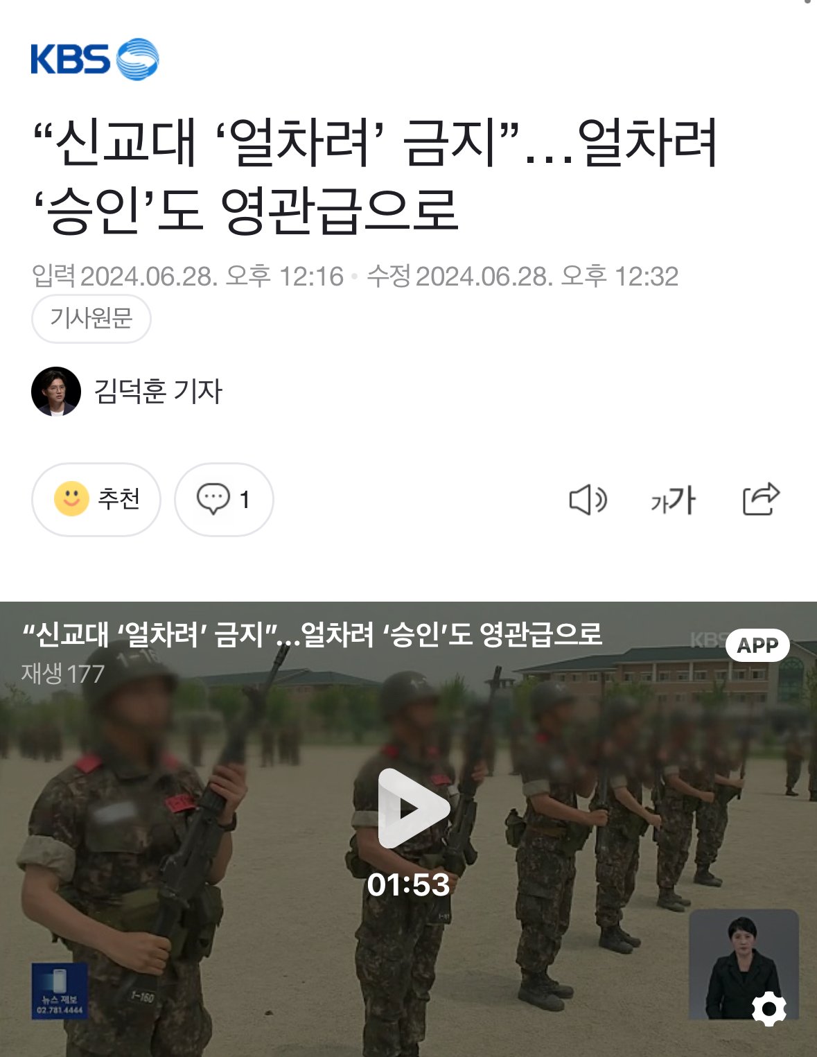 [KBS] “신교대 ‘얼차려’ 금지”…얼차려 ‘승인’도 영관급으로