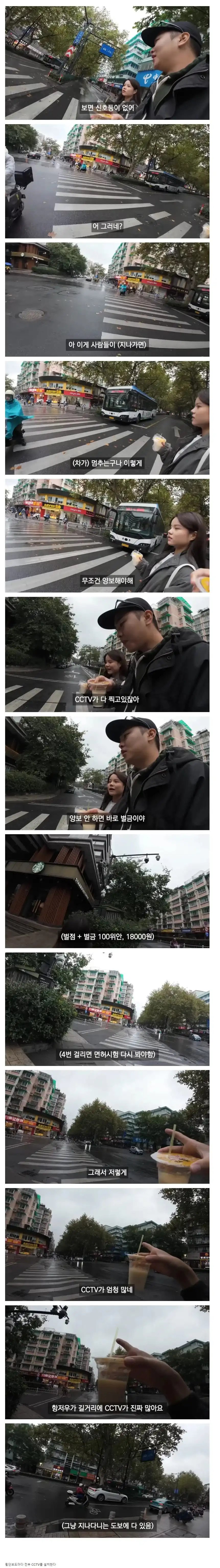 중국의 신호등 없는 횡단보도에서 차들이 양보하는 이유