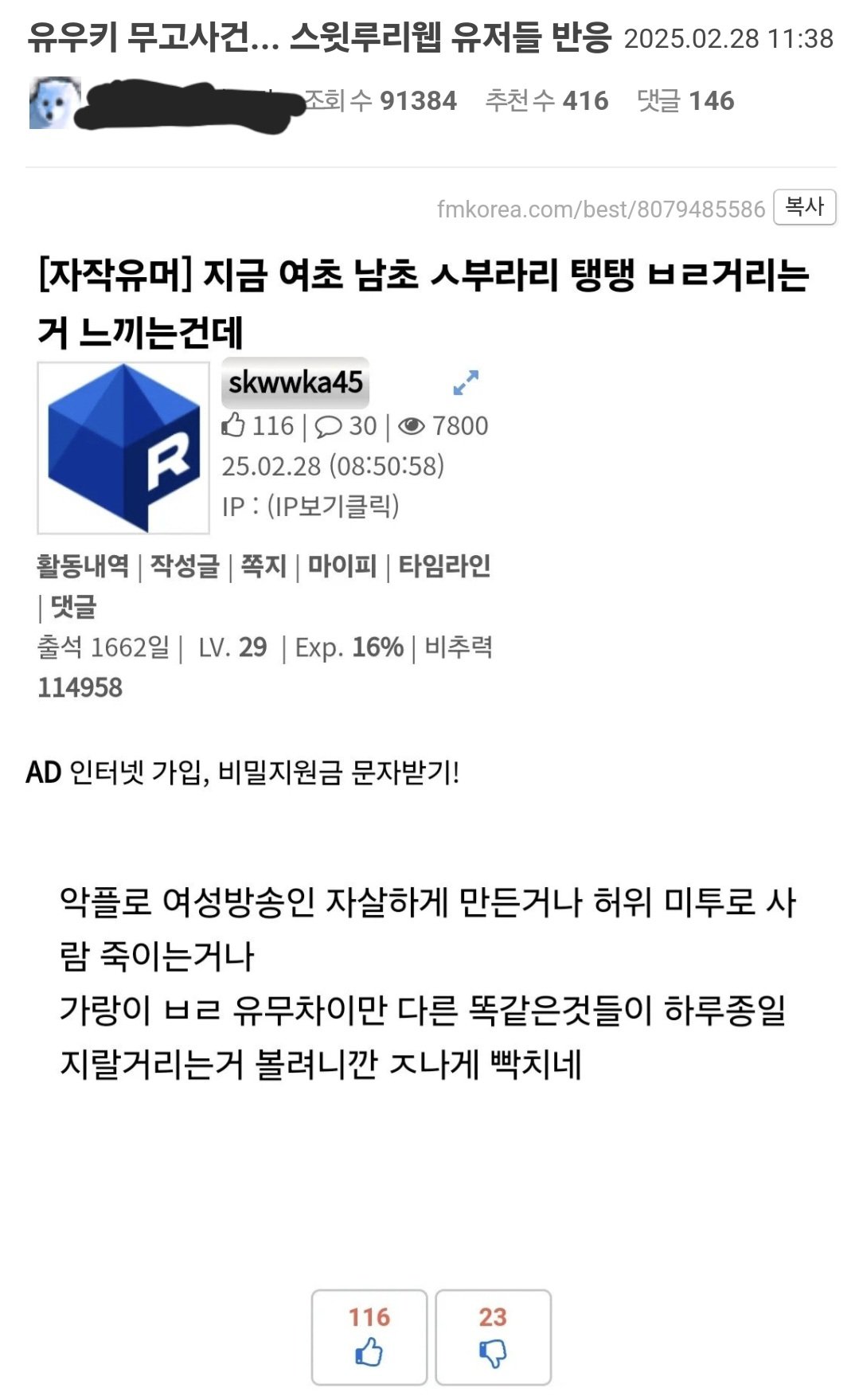 이거 글 보니까 첩자새끼가 일부러 펨코 욕먹일려 한건가