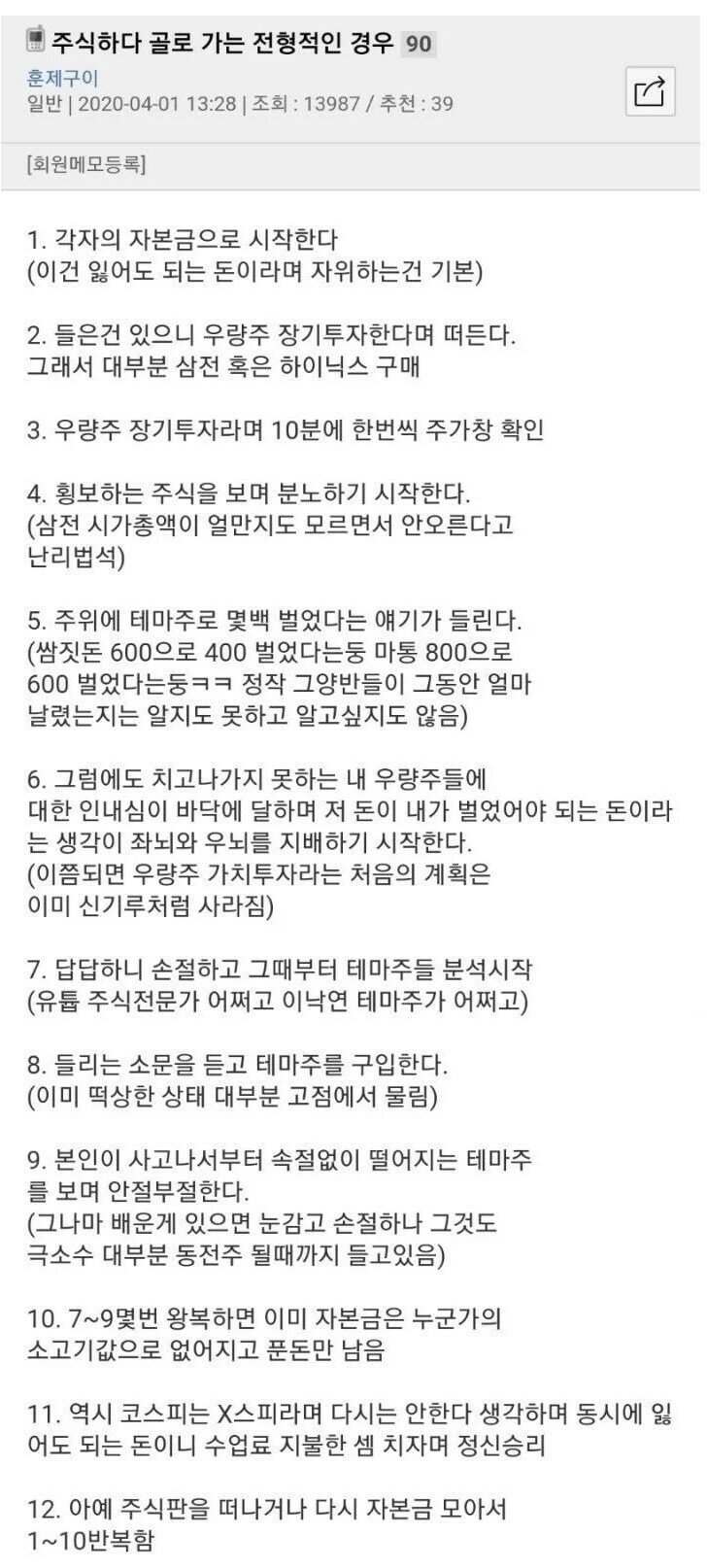 주식하다 골로 가는 전형적인 경우