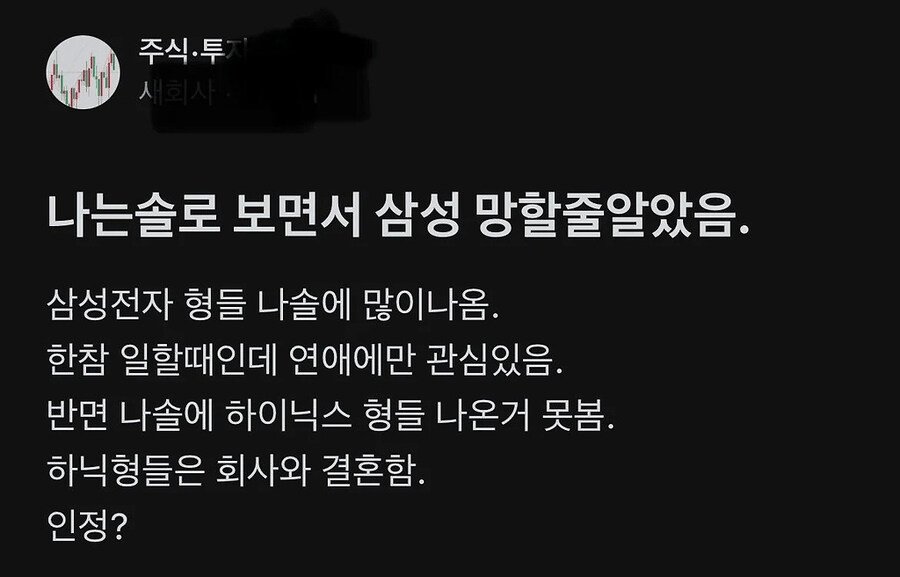 나는솔로 보면서 삼성전자 망할줄 알았던 사람