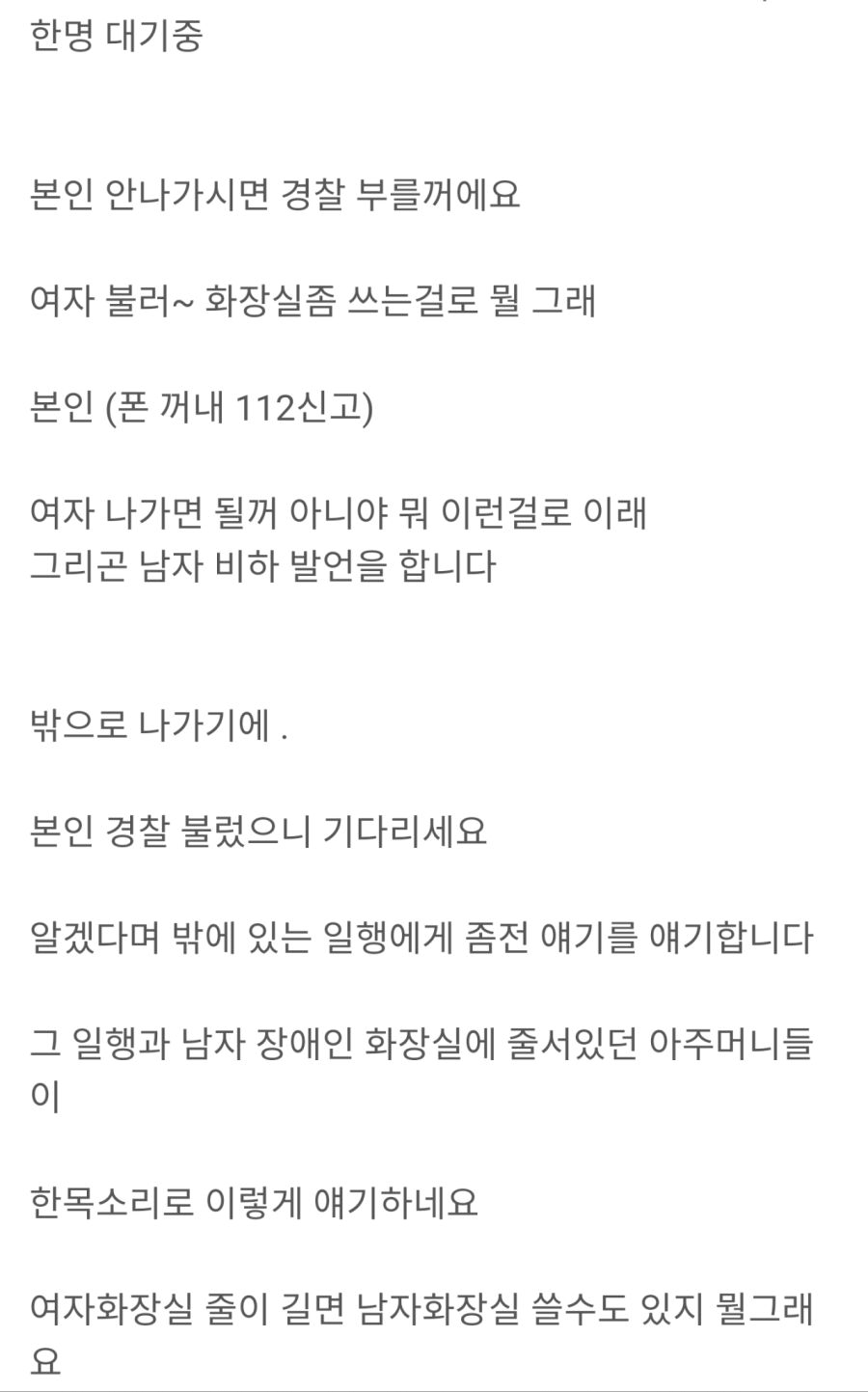 여자가 남자화장실 들어오면 범죄가 아니랍니다