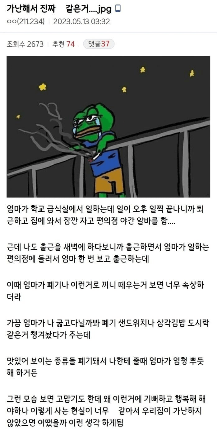 가난해서 진짜진짜 힘든거...