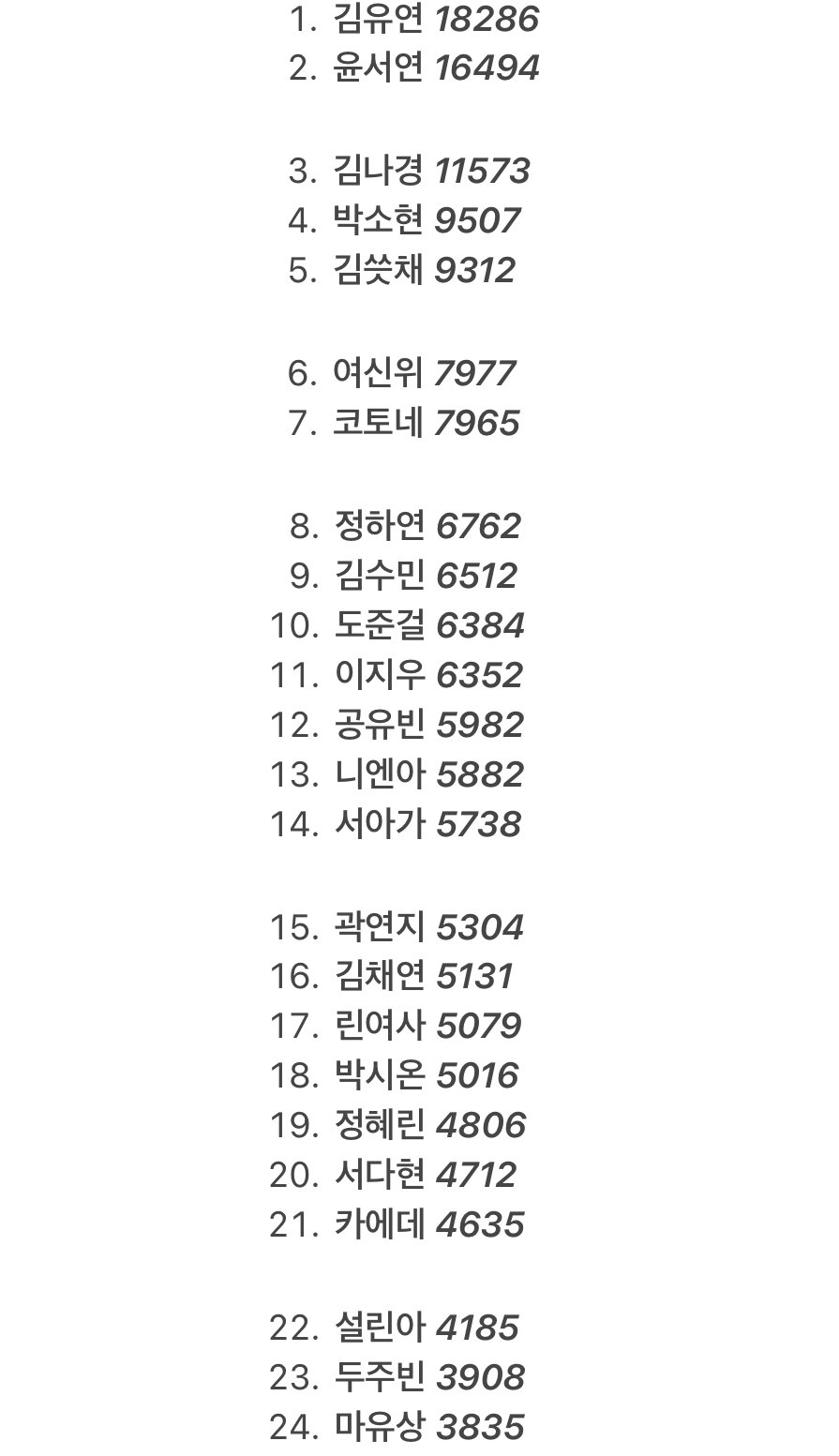걸그룹 트리플에스 멤버 인기 순위 최신 버전