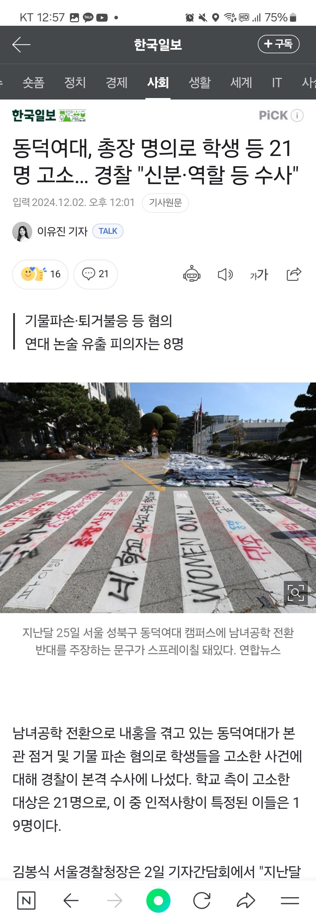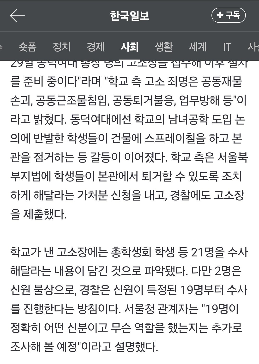 동덕여대 21명 고소!!!