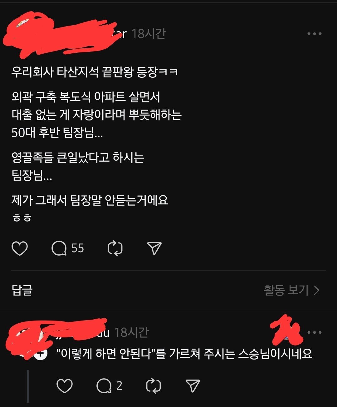 댓글에 다 상사 조리돌림하네