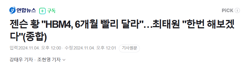 젠슨 황 "형 급해 HBM4 빨리 줘"…최태원 "한번 해보겠다"
