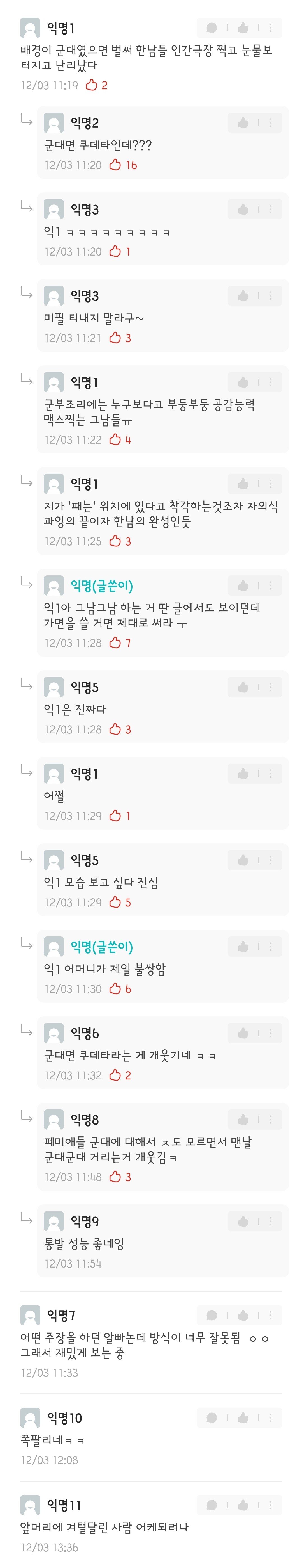 숨쉬듯이 군대얘기를 비유로 드냐 ㅋㅋㅋㅋㅋ
