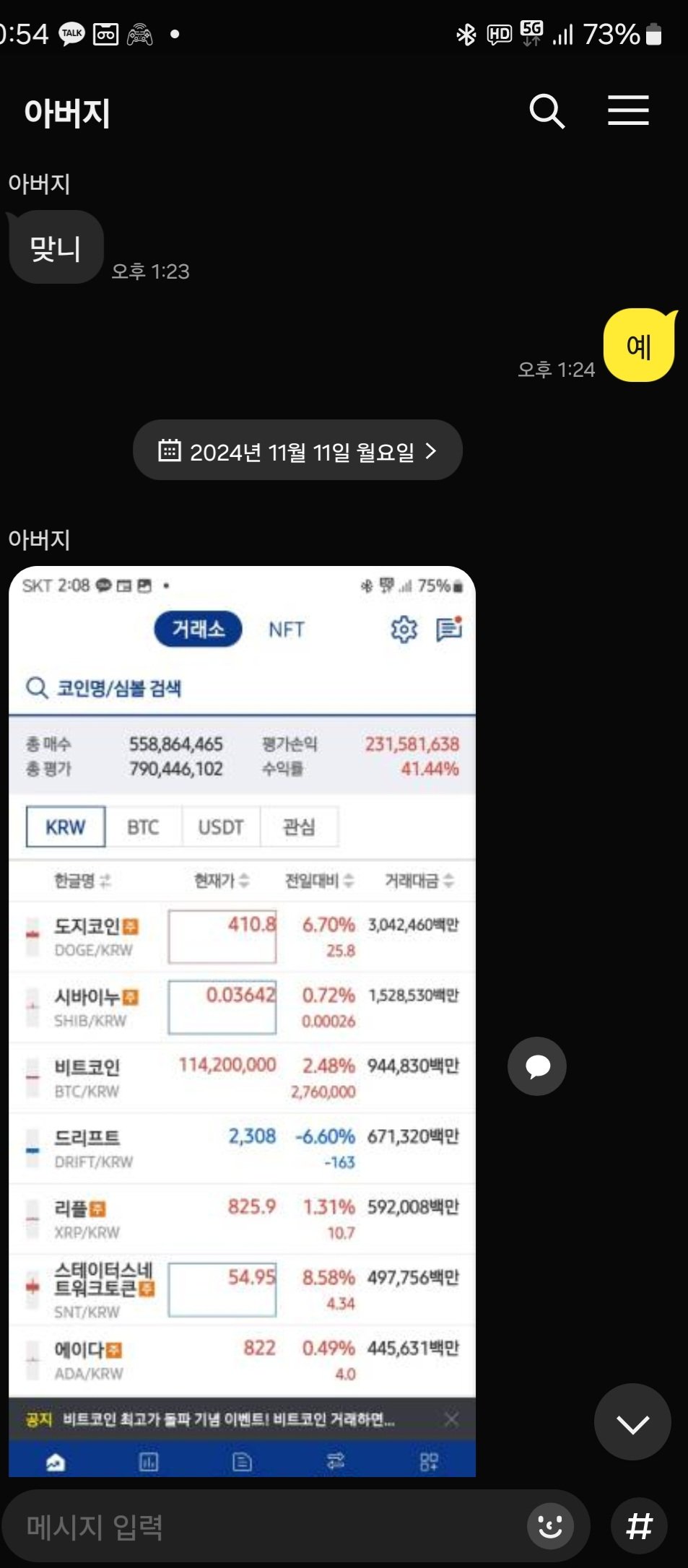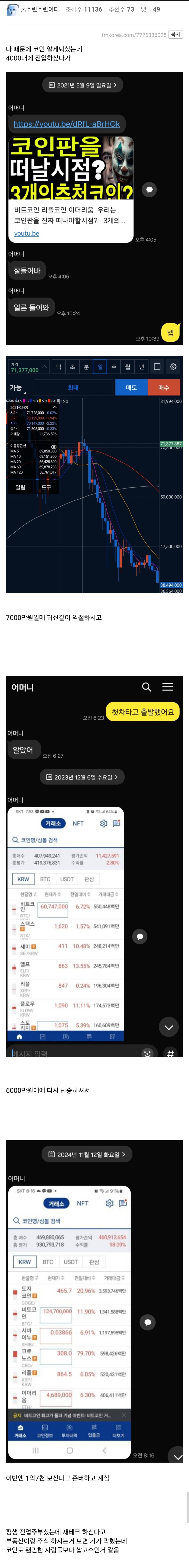비트코인 1.5억 기념 부모님 자랑