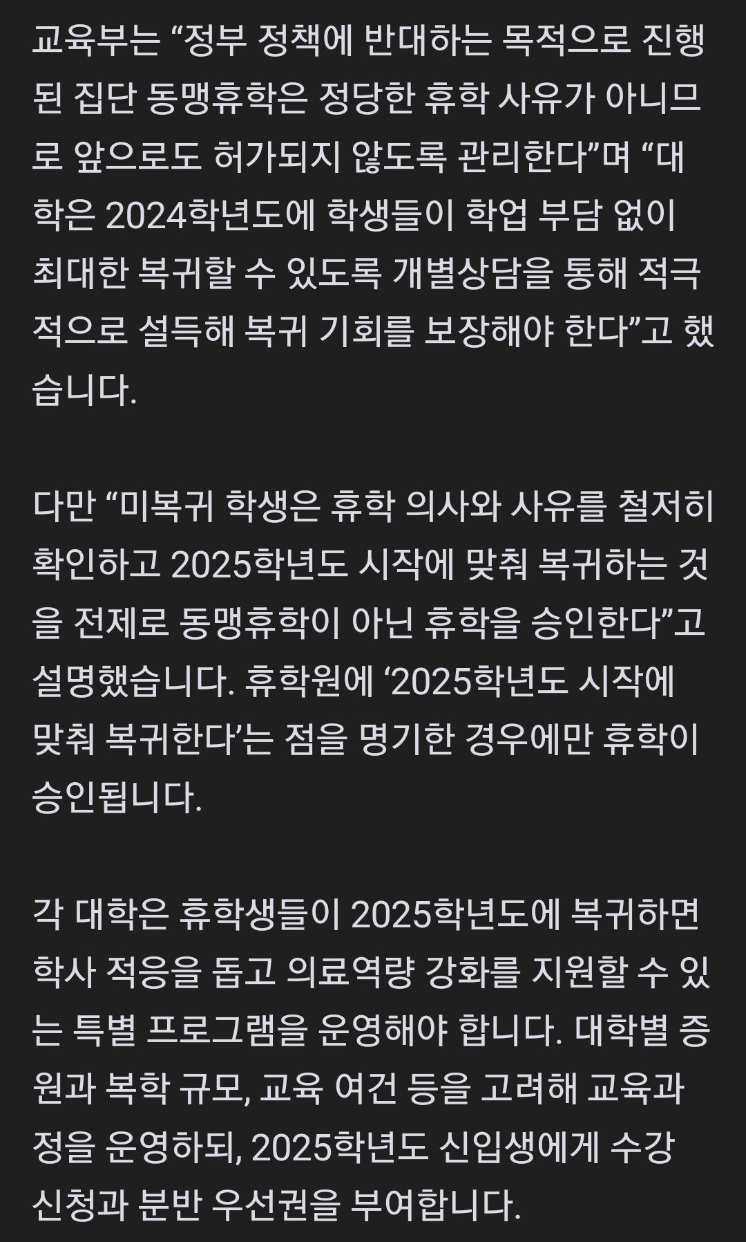 정부, ‘내년 복귀’ 조건으로 의대생 휴학 승인한다