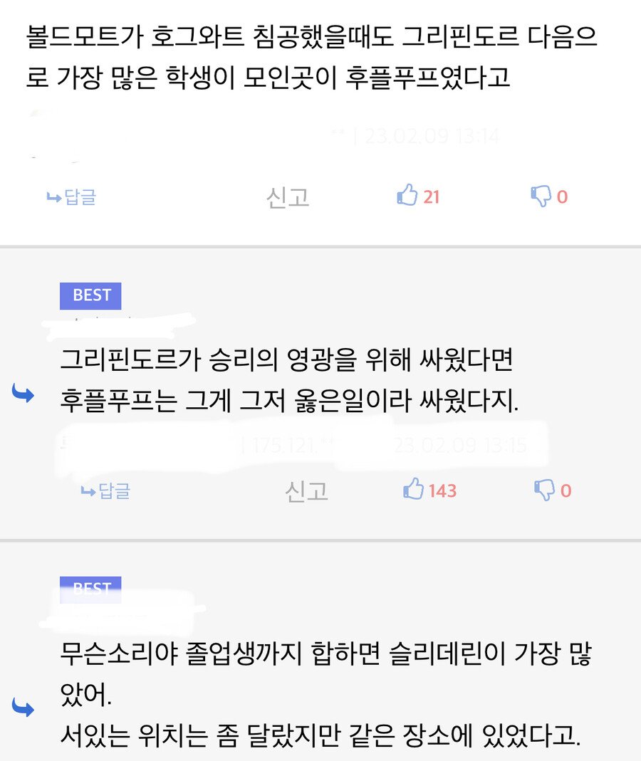 호그와트 마지막 전쟁 때 가장 많은 학생이 참여한 기숙사.