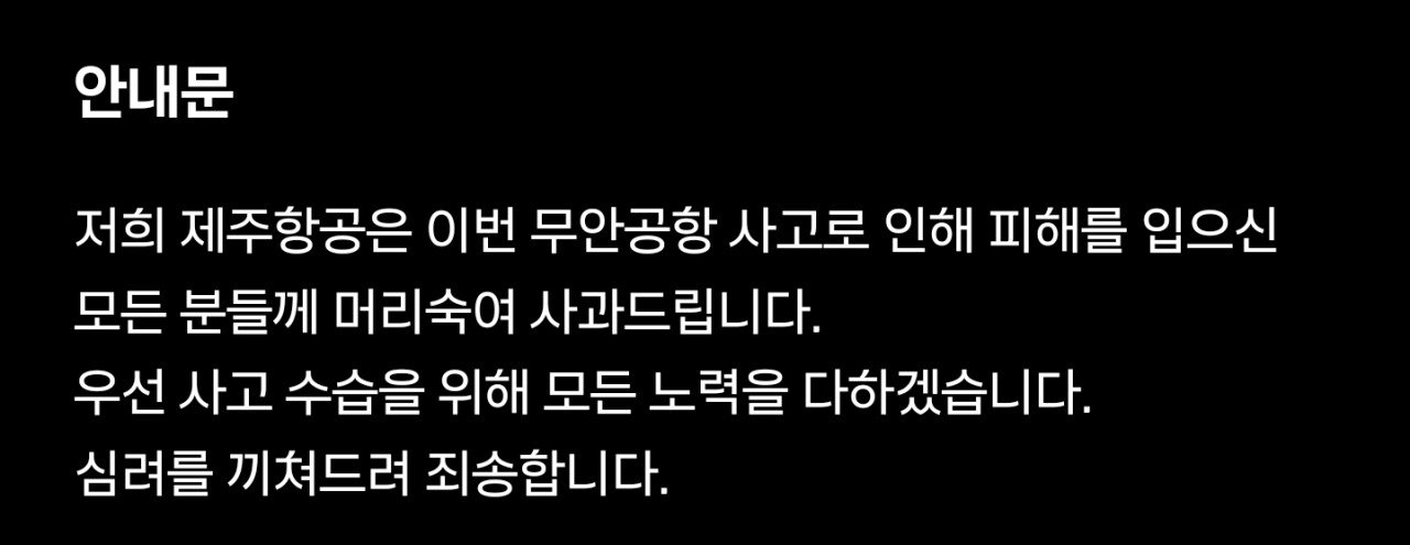 제주항공 대국민 무안공항 사고 발표 안내문