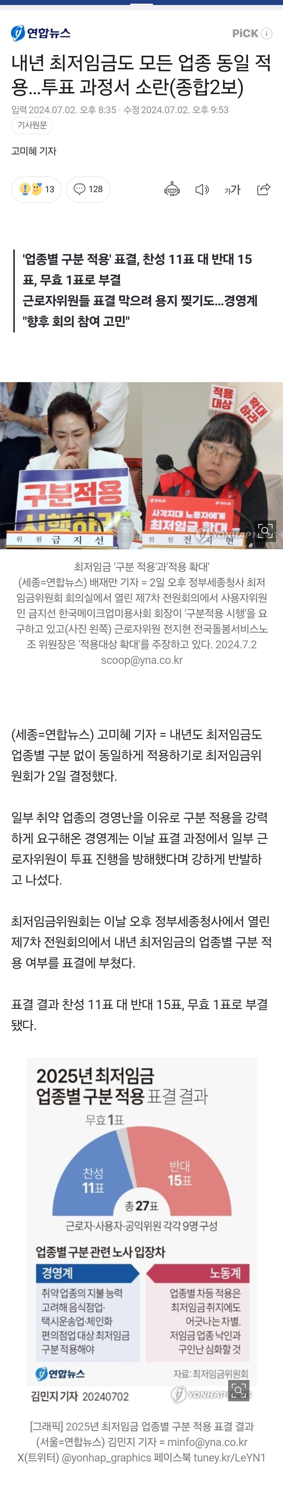 최저임금 차등 적용 안하기로...모든 업종 동일 적용