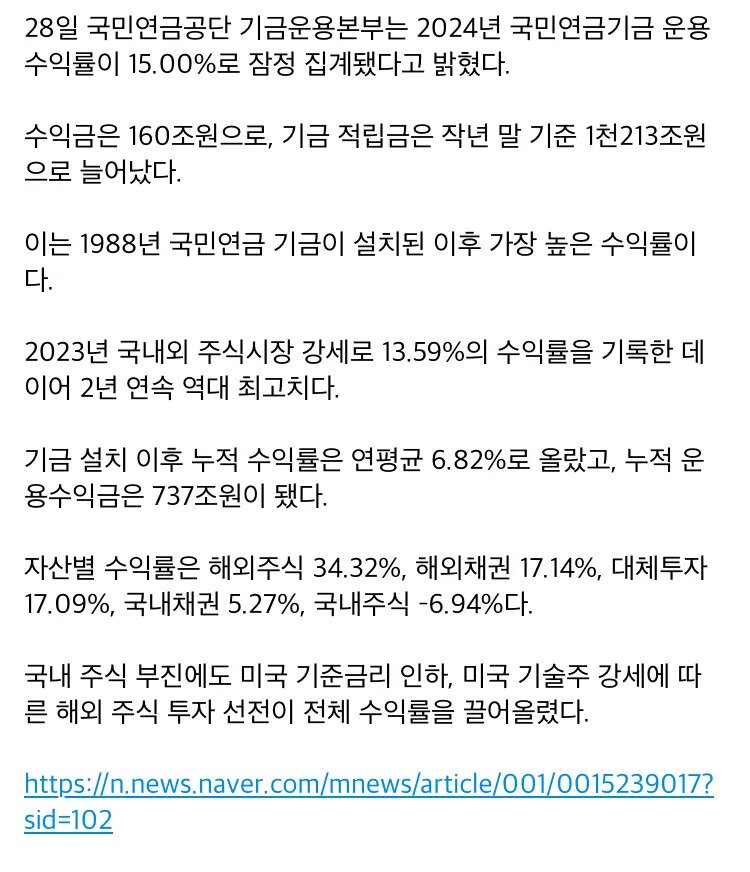국민연금 작년 수익률 15% '역대 최고'…수익금 160조원