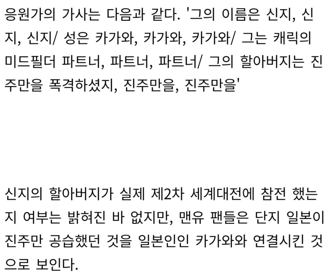 박지성 개고기송 보다 더한거 같다는 카가와 응원가