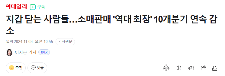 지갑 닫는 사람들…소매판매 '역대 최장' 10개분기 연속 감소