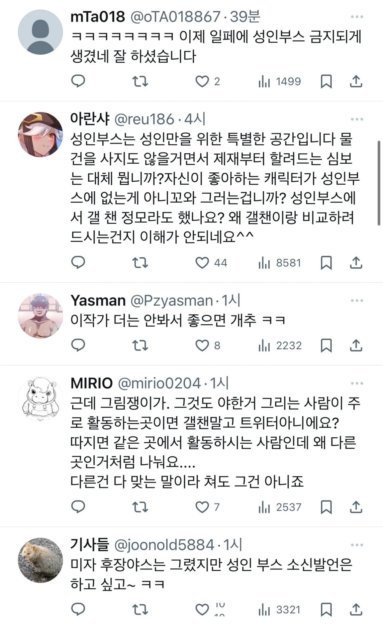 다른 사용자들에게 불쾌감을 줄 수 있는