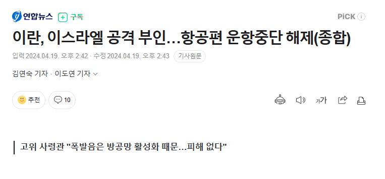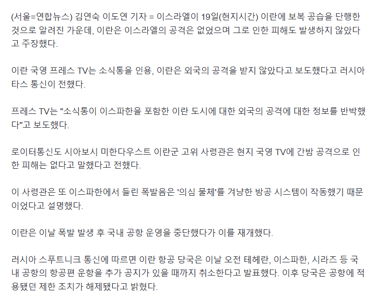 이란 '이스라엘 공격 없었고 피해 없다' ....?????
