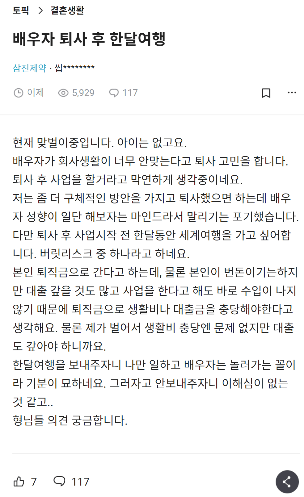 배우자 퇴사 후 한달여행