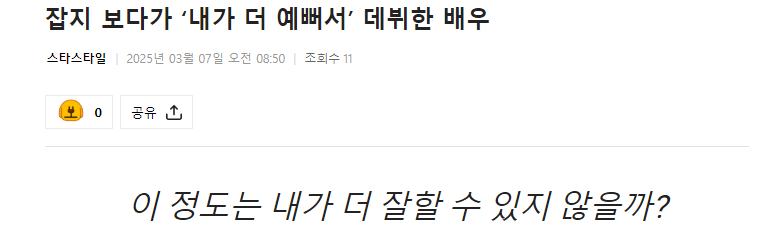 잡지 보다가 ‘내가 더 예뻐서’ 데뷔한 배우