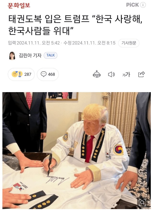 태권도복 입은 트럼프 " 한국 사랑해".jpg