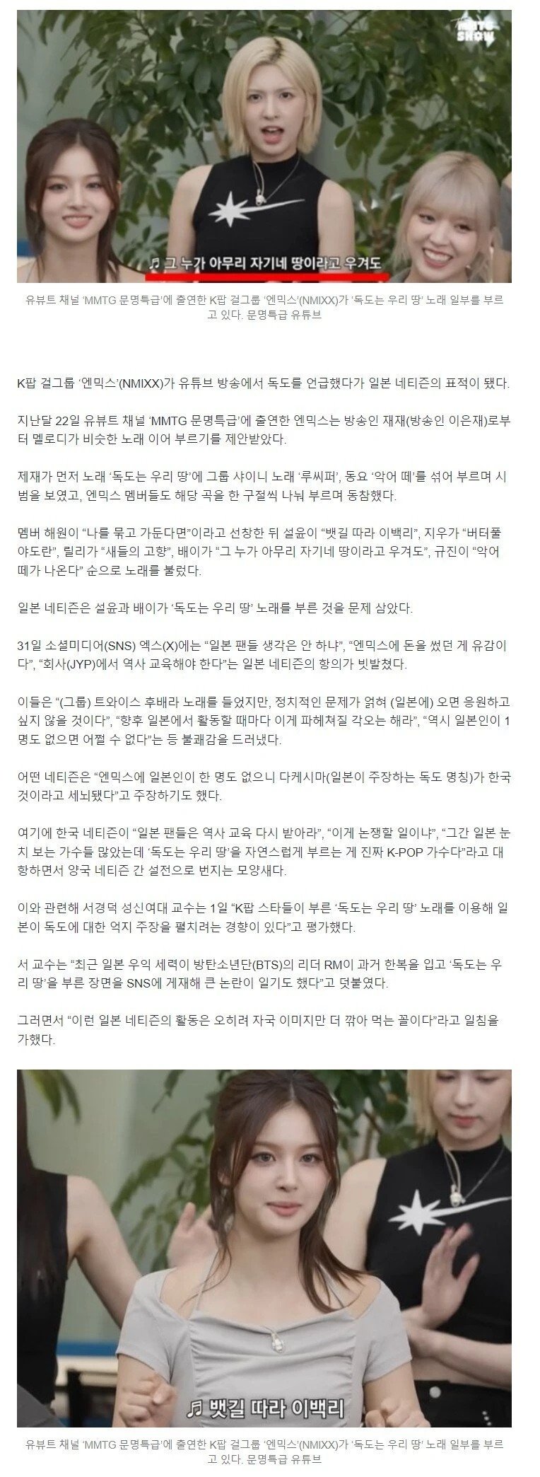 일본 “독도 노래 부른 아이돌 역사교육 좀 시켜라”