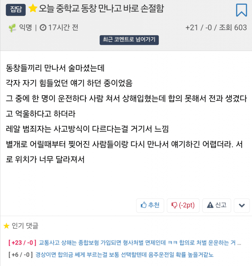오늘 중학교 동창 만나고 바로 손절함.