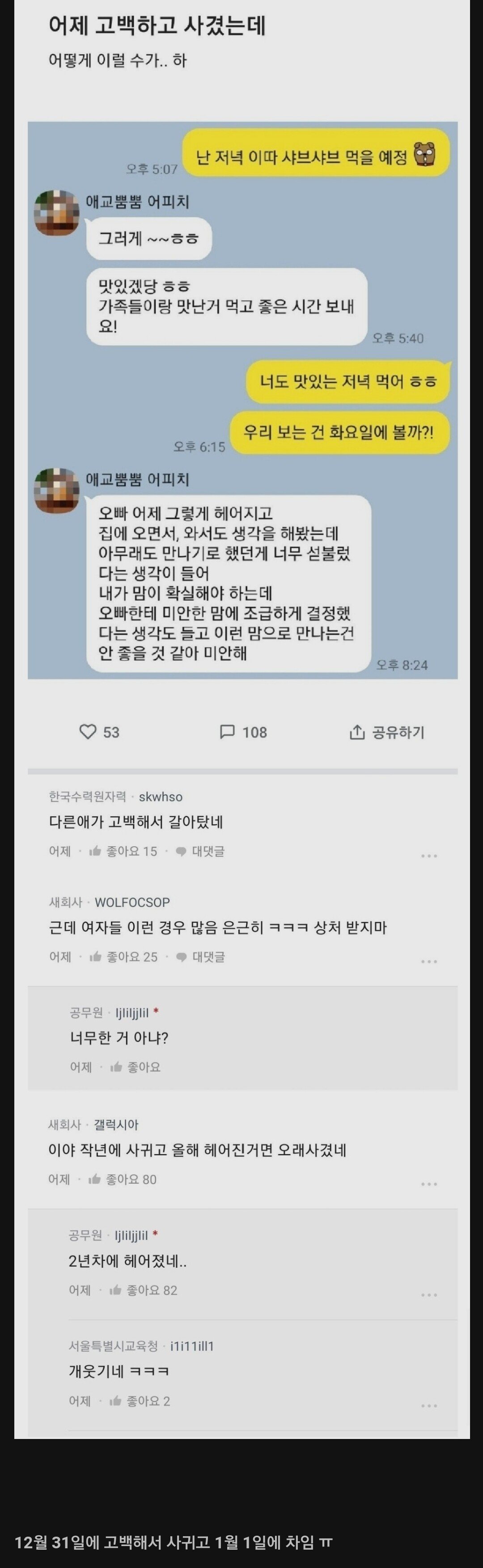 여친과 사귀고 2년차에 차였다는 블라남