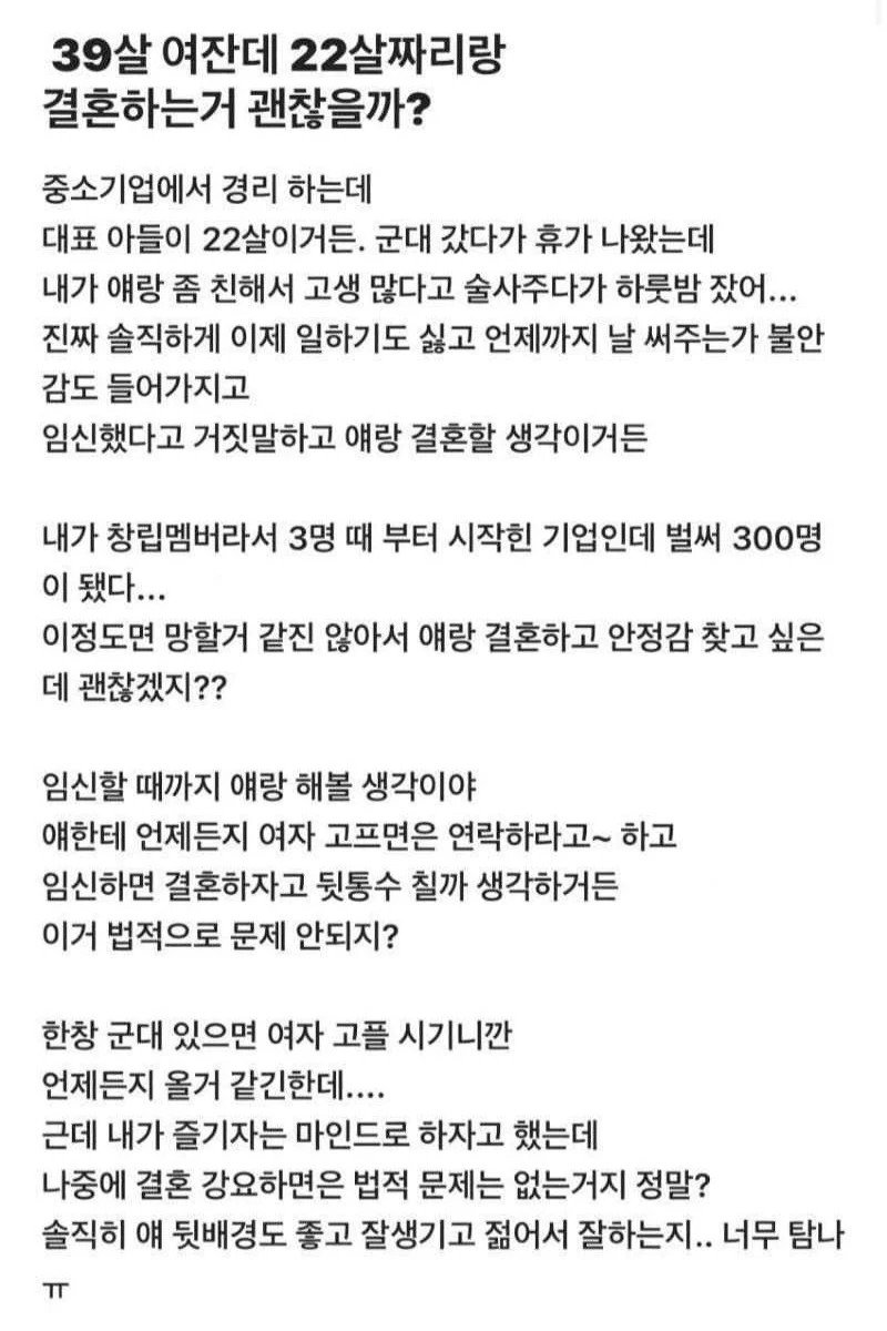 39살 여자인데 22살짜리랑 결혼하는거 괜찮을까?.jpg