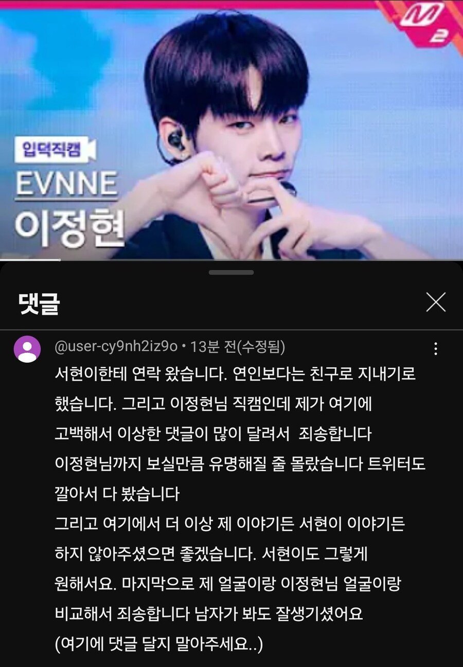 남자아이돌 직캠에 댓글로 고백한 사람 + 후기.JPG