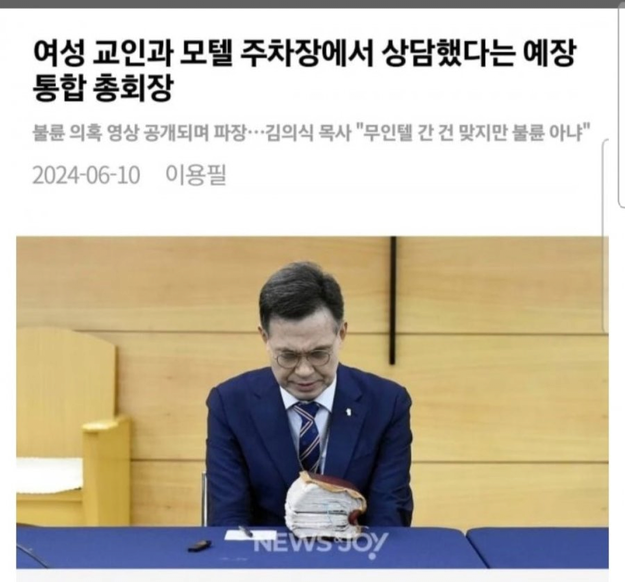 모텔 앞에서의 영상이 공개됐는데도 김의식 목사는 불륜 의혹을 부인했다. 7월 8일 승합차에 탔던 사람은 여성 교인이 맞다고 인정했다. 교인이 조용한 곳에서 상담하기를 원해 무인텔 주차장에서 얘기했다는 것이다. 김 목사는 6월 10일 기자와의 통화에서, 여성 교인과 차를 타고 자유로를 달리고 있었는데 좀 더 조용한 곳이 낫겠다 싶어서 파주 무인텔 주차장에 가게 된 것이라고 했다. 장소 자체가 오해를 살 만해 자신의 불찰이라고 했다. 하지만 일각에서 사실이 아닌 걸 시나리오를 짜서 불륜으로 몰아가고 있다며 부당하다고 했다.