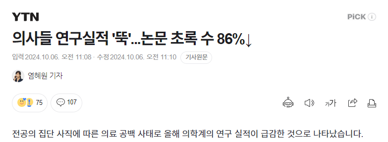 의사들 연구실적 '뚝'...논문 초록 수 86%하락
