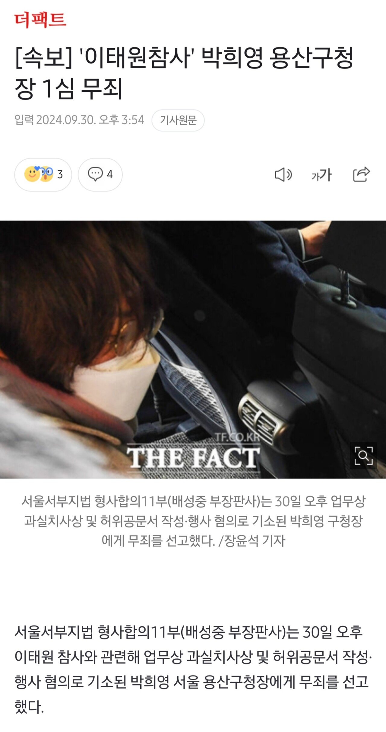 [속보] '이태원참사' 박희영 용산구청장 1심 무죄