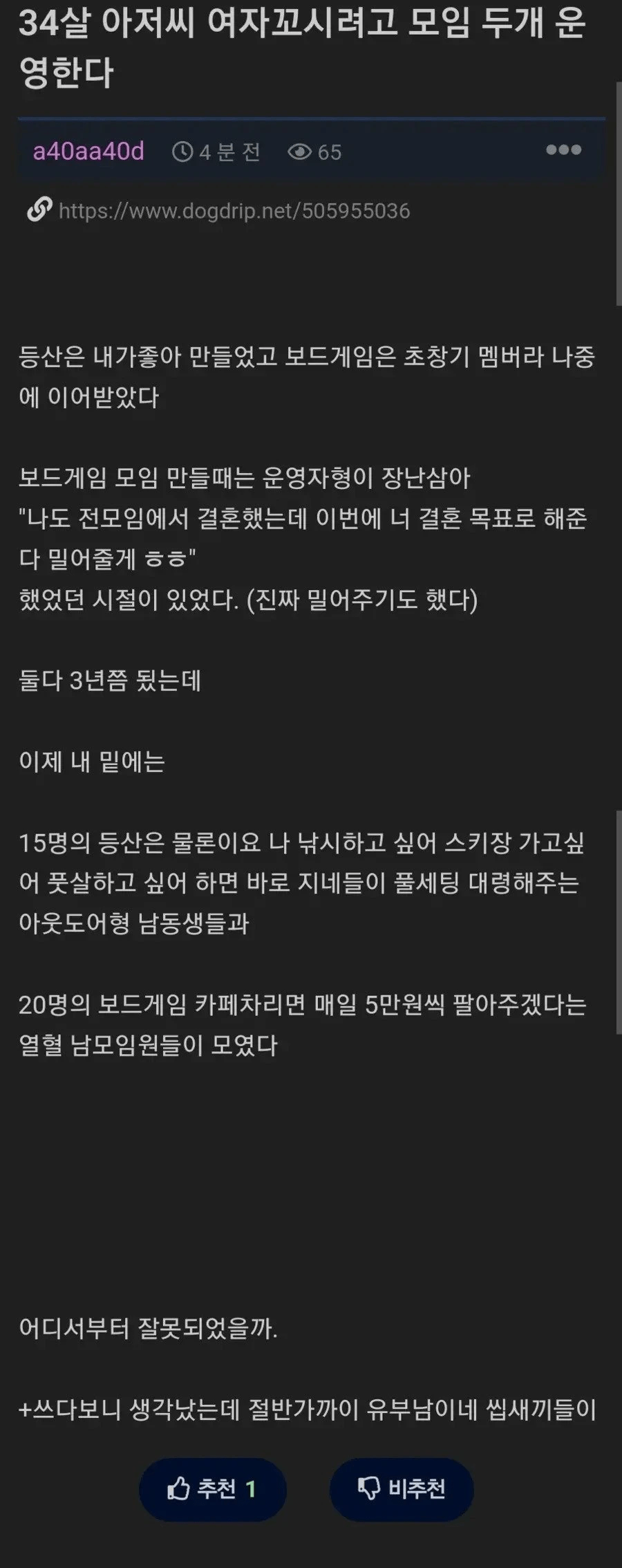 여자 꼬실려고 모임 2개 운영한 34살 아조씨