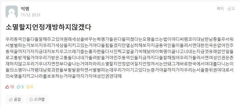 욕설이나 비방 목적의 댓글은