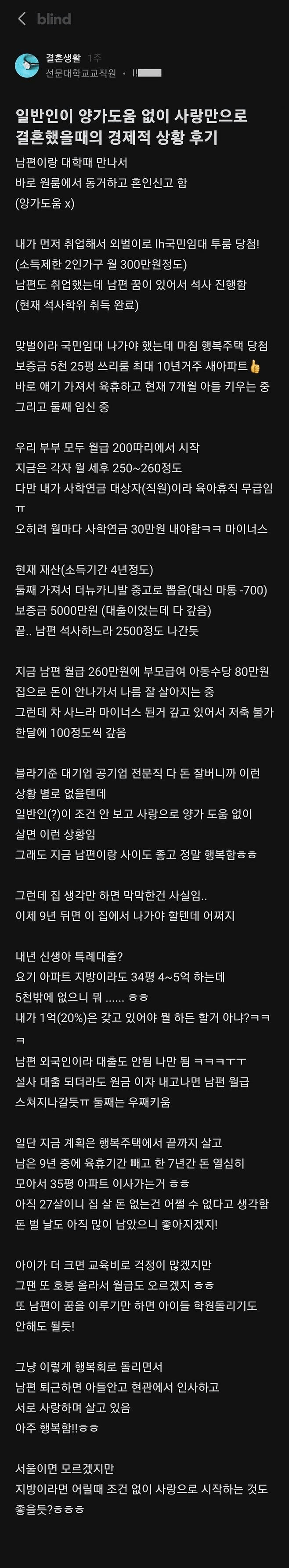 양가 도움 없이 사랑만으로 결혼한 사람들의 후