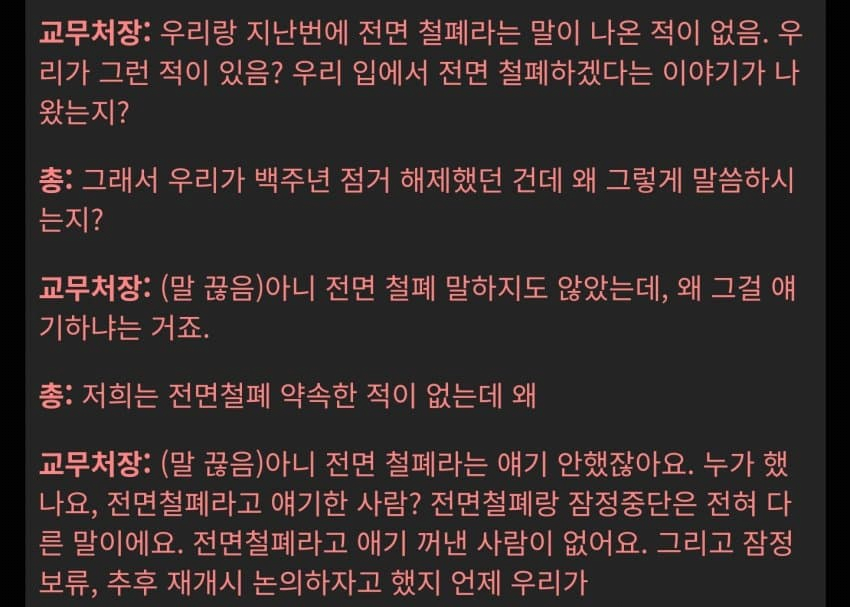 교무처장 : 남녀공학 논의 전면 철폐라는 말 쓴적 없다
