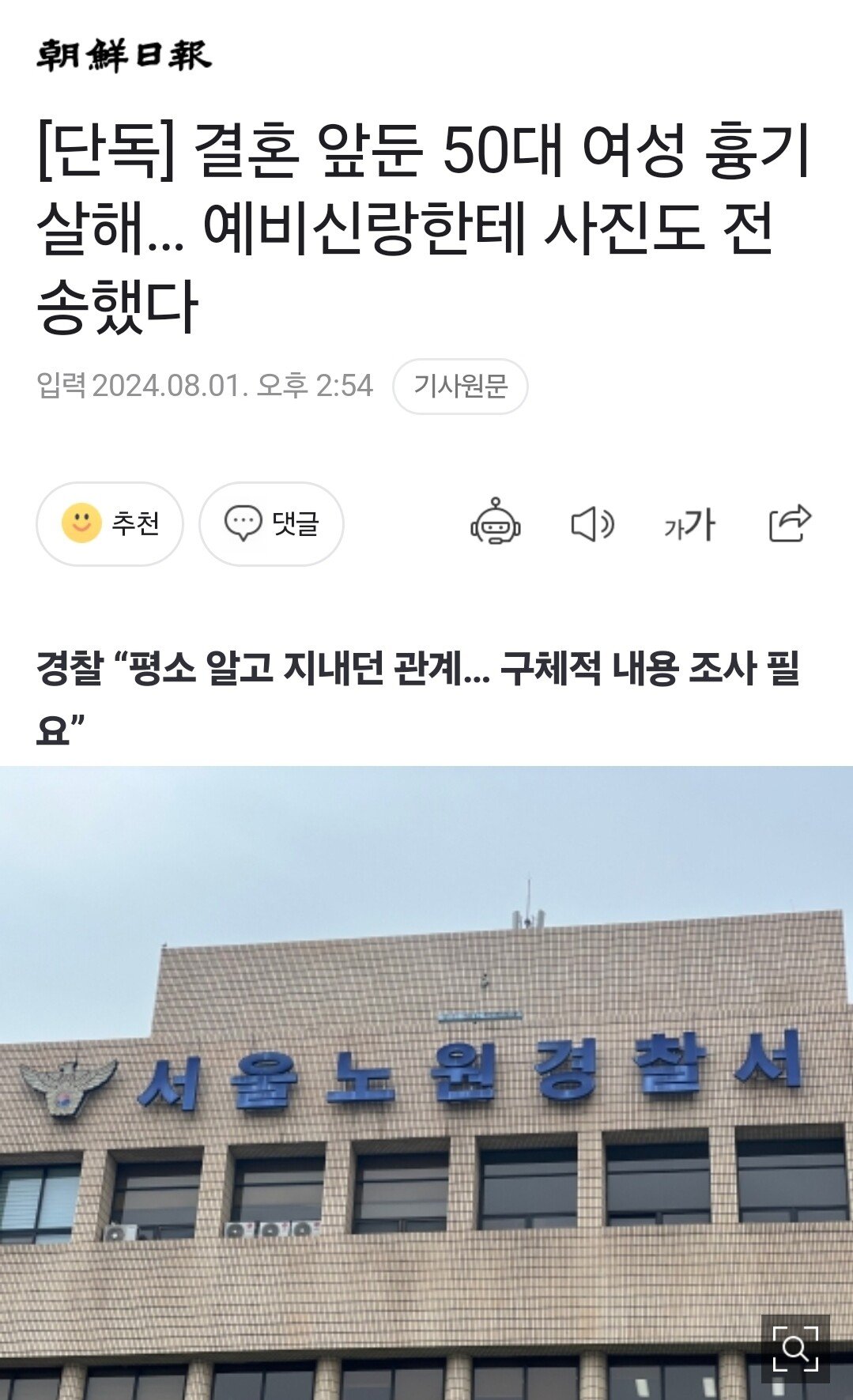 경찰에 따르면 A씨는 지난달 31일 오후 4시쯤 피해 여성 B씨를 자신의 집으로 불러들인 뒤 흉기로 살해한 혐의를 받는다. 당시 B씨는 결혼을 앞두고 있었던 것으로 알려졌다. A씨는 B씨가 근무하던 서울 동대문구의 한 식당에 손님으로 방문했다가 서로를 알게된 것으로 전해졌다.