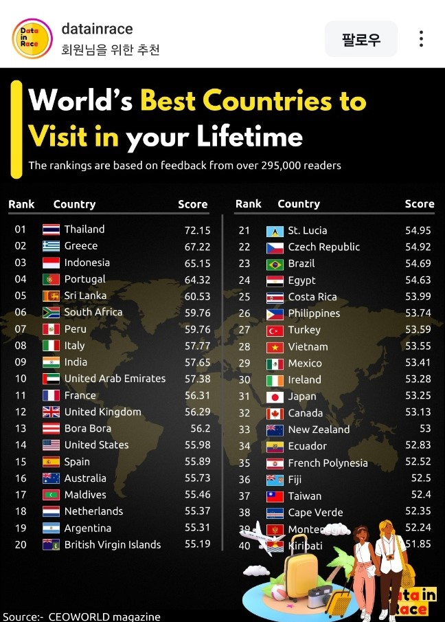 방문할만한 인생 최고의 여행 국가