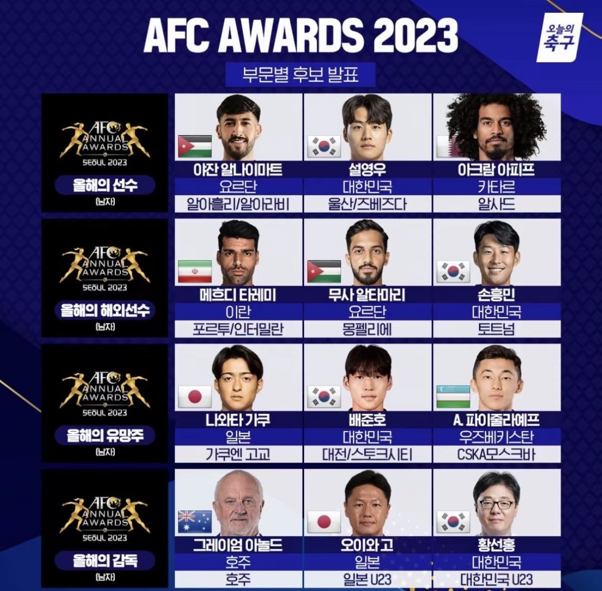 AFC 2023 부문별 수상 후보 (황선홍 등재) ㄷㄷㄷ