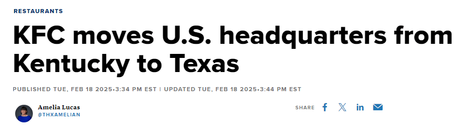 미국 켄터키 루이빌에 있던 KFC 본사가 텍사스로 이전할 방침이며